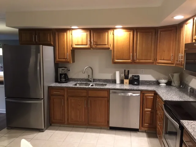 The Preusz Group renovated this house and brought it into this decade by removing the 1980’s design. The modernization included tearing away the dated wallpaper, repainting all interior walls, light fixtures, outlet covers, door knobs, and cabinet hardware were all swapped out for more contemporary styles. The Kitchen features new appliances and granite counter tops. The entire house was built with high-efficiency in mind. Lighting incorporates LEDs and climate control is routed through a Nest Thermostat that allows control of the house environment through a smartphone.
